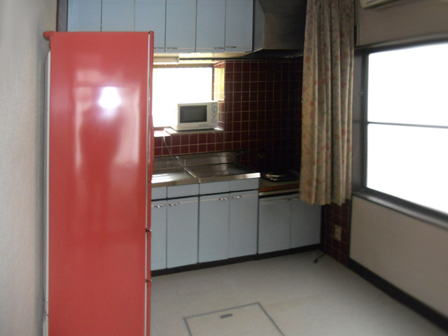 対面キッチン。居間と台所の間にあった壁を取り払い室にし、明るいLDKとなりました。